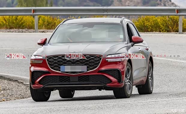 从路测图来看,GV70 EREV原型车虽有伪装覆盖,但核心设计仍延续捷尼赛思家族风格:前脸预计采用标志性的双线网状菱形格栅,搭配分体式“勇者之徽”灯组——上部为纤细的“灵感之翼”LED日行灯,内部集成微透镜阵列技术,下部则是主照明单元,整体营造豪华中型SUV的精致感。