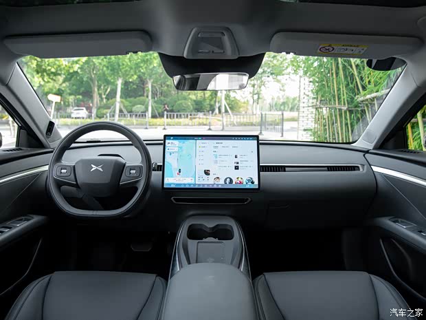 内饰方面,小鹏MONA M03配备了15.6英寸中控大屏,车机搭载高通骁龙8155芯片,拥有全栈自研车机系统,支持360度全景影像和3D感知渲染地图。空调采用了长条形贯穿出风口,并在手枕区域设有双杯架以及手机无线充电板、置物槽。